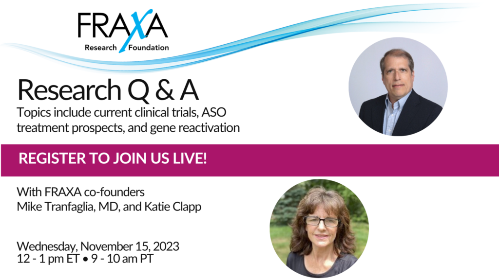 Please join FRAXA co-founders, Katie Clapp and Dr. Michael Tranfaglia, for a Research Q&A via Zoom on Wednesday, November 15, 2023 at 12:00 pm (noon) ET