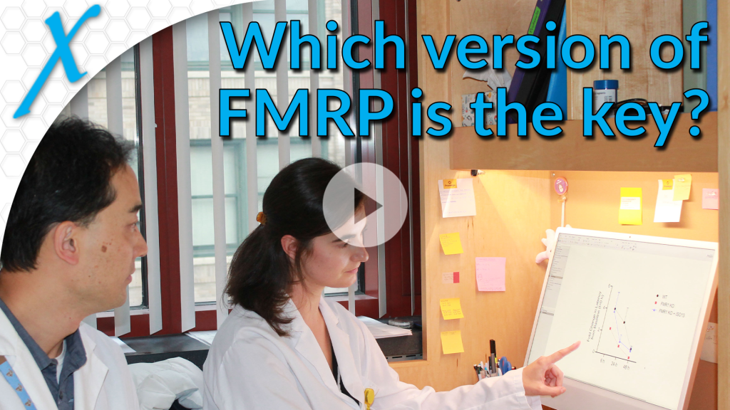 Fragile X syndrome is caused by lack of one protein, FMRP. But this one protein occurs in different variations. Do the different versions of FMRP have different roles in the brain, and if so, is there one that’s key? If we could replace FMRP to treat Fragile X syndrome, which version would we use?
