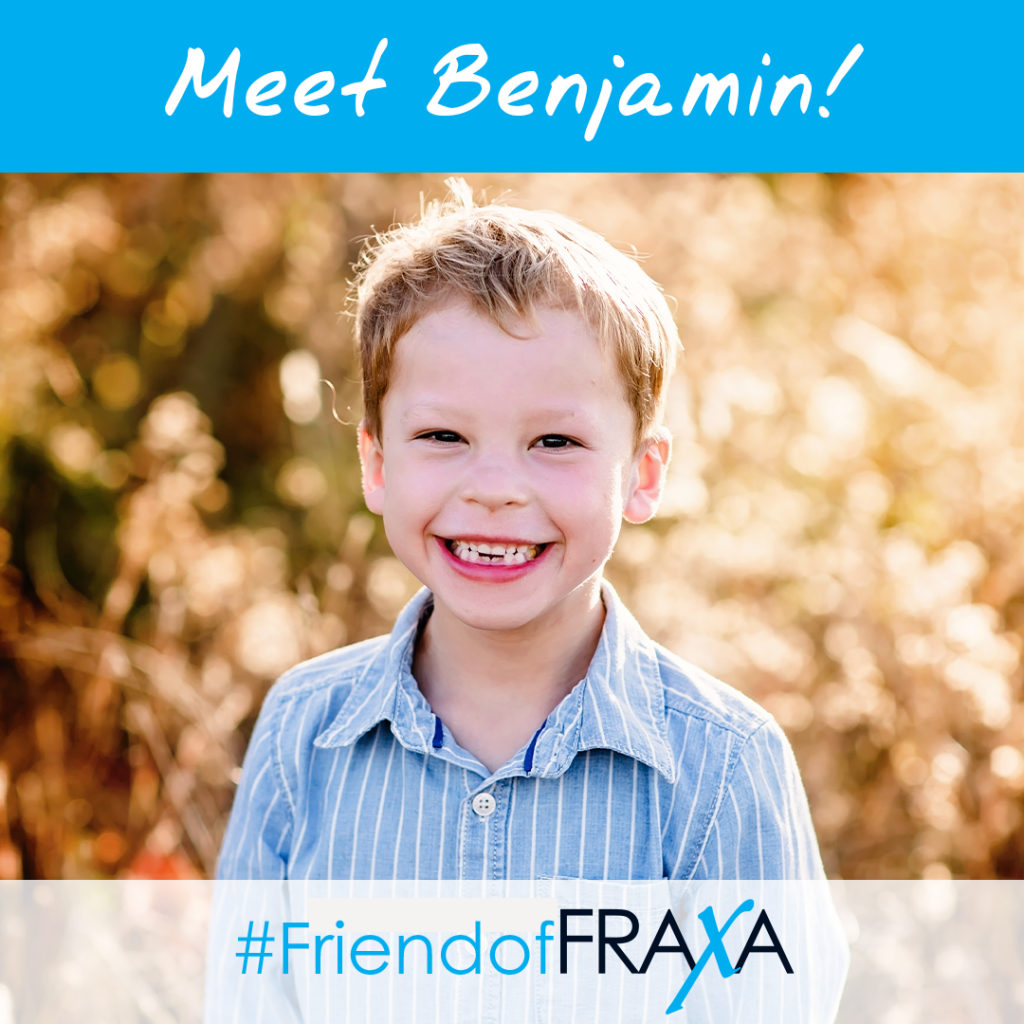 Meet #FriendofFRAXA Benjamin! His smile lights up the room. He is a burst of energy! He gives the best hugs and loves to cuddle. If you would like to nominate someone as a #FriendofFRAXA, we welcome all who have been touched by Fragile X, including friends, grandparents, siblings, professionals and companions alike to become a #FriendofFRAXA with the goal of putting a face to Fragile X for those who may not know someone directly.