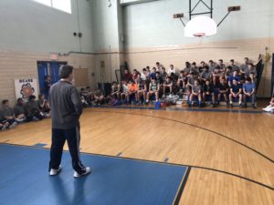 Scott is also a longtime volunteer for one of FRAXA’s longest running fundraising program, Patrick’s PALS. In fact, the NAA 3-on-3 tournament is a complementary feeder event to the larger Patrick’s PALS 3-on-3 basketball tournament. Many of the kids have and will go on to compete in Patrick’s PALS. FRAXA board member Jim Vershbow, one of the founders of Patrick’s PALS, was on hand as one of the dedicated volunteers. Jim, who grew up in the area, also got up in front of the group to talk about his son Patrick (namesake of his event) who has Fragile X. Jim expressed his gratitude for what it means to him personally to see to the support of all the boys and their parents. He also talked to the boys about the importance of thinking about things bigger than themselves and the power of giving back to the community.