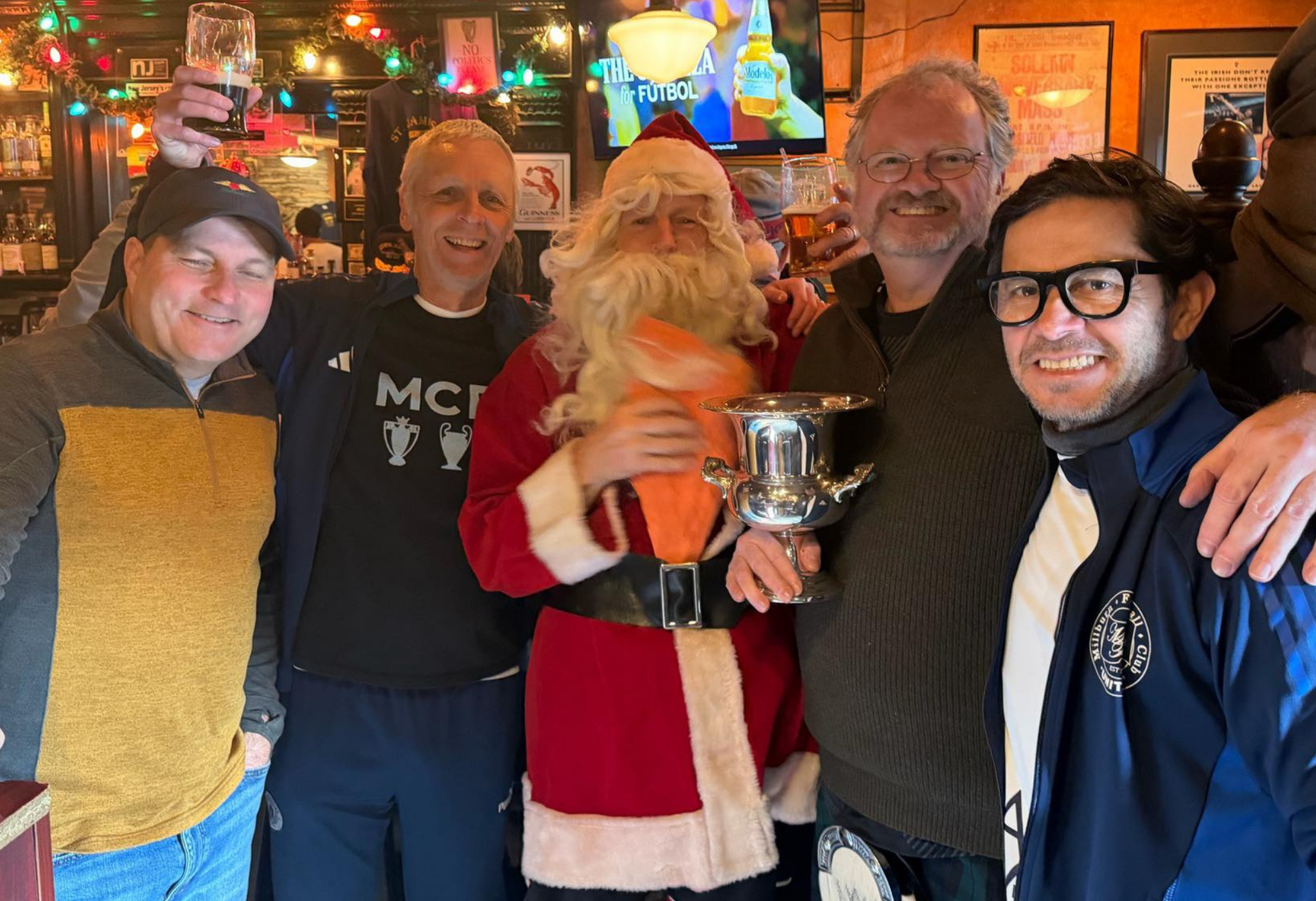 Festivities continued after the final whistle at St. James’s Gate Publick House in Maplewood NJ, affectionately known as “The Gate”, the official home of the Callum Cup. The trophy is proudly displayed behind the bar year-round. The celebration wrapped up with a live performance from a bagpiper, who played a mix of Scottish classics and holiday favorites, adding the perfect festive flourish to the day.