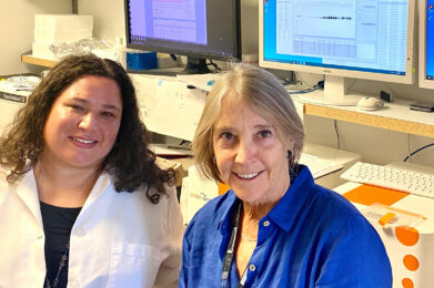 Dr. Joel Richter and Dr. Sneha Shah in their UMass Chan Medical School lab researching ASO therapy for Fragile X syndrome.