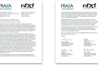 NIH funding delays are threatening Fragile X research, putting critical studies and future treatments at risk. FRAXA Research Foundation and NFXF are urging Congress and the NIH to act now. Learn how you can help secure funding for Fragile X research.