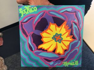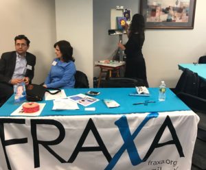 A special friend of FRAXA joined us to bring even more positive energy to the event! Artist Maria Castellano-Usery, volunteers her time and talents with “Brushstrokes with Impact”. During the conference, Maria created an original painting to be raffled at the end. Cliff and Katherine Lamb were the lucky winners and Maria painted their daughter’s name in the image. Maria is an amazing person with a huge heart. She is not a Fragile X parent but volunteered her time and the painting to support FRAXA’s mission. Thank you, Maria!