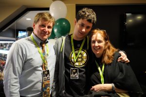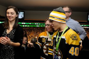 Fifty friends of FRAXA enjoyed an amazing night at the TD Garden in Boston on March 30. They gathered to watch the Boston Bruins take on the Dallas Stars. It was a great opportunity for us to unite the greater Boston Fragile X community. We were able to convene and thank some of our local families and introduce them to university and biotech scientists who are working to find a cure for Fragile X.
